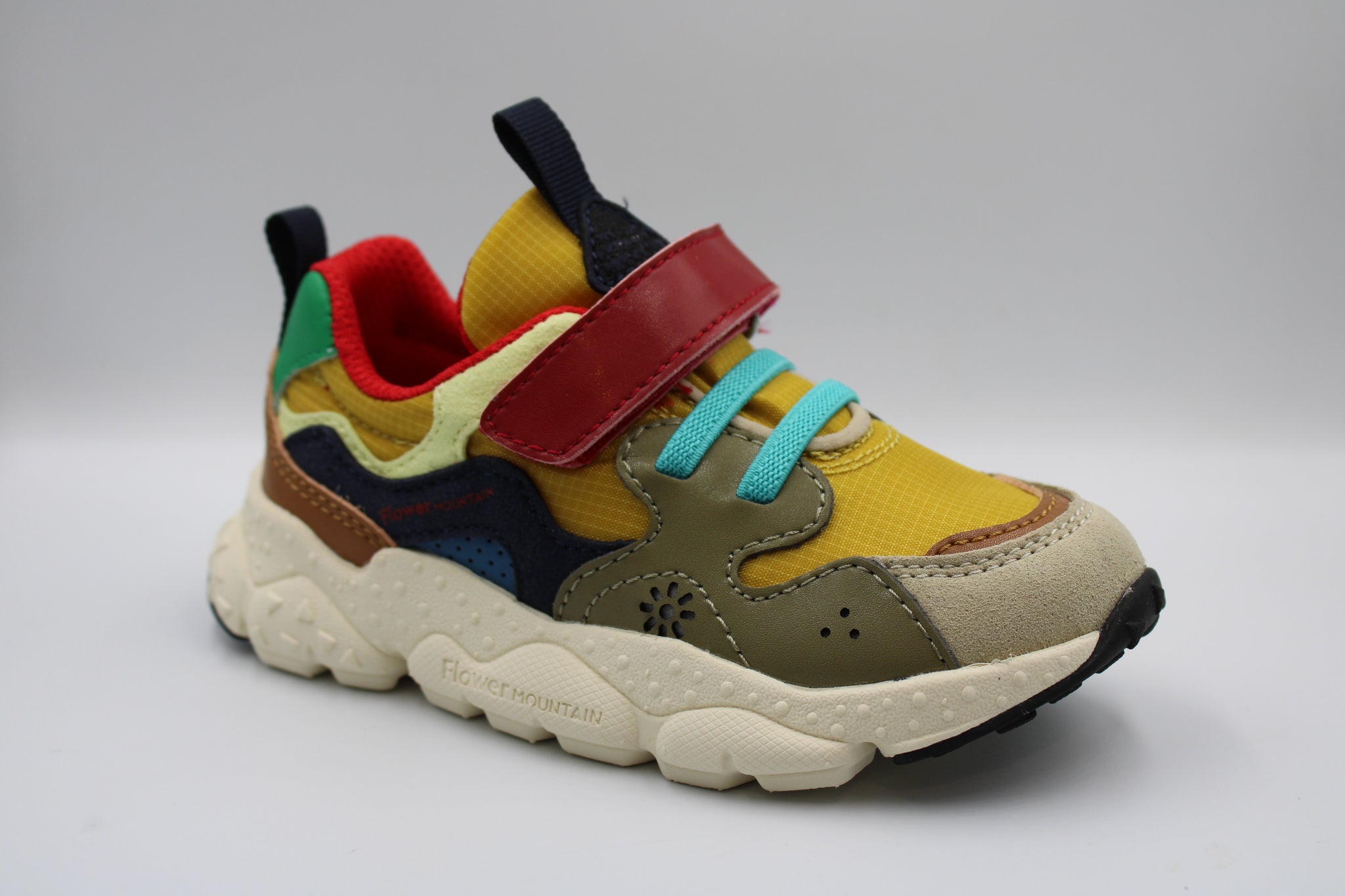 Een geweldig sneakertje met heel veel elementen en kleuren! Ze zijn ook nog eens ongelooflijk licht, hebben een verhoogd en uitneembaar voetbed in kurk en de stof binnenin werd gemaakt van 100% gerecycleerd materiaal. Een stoere chunky maar heel flexibele zool met reliëf maakt dit schoentje helemaal af. Ze hebben rekkerveters en aantreksluiting, geen veters te strikken dus!