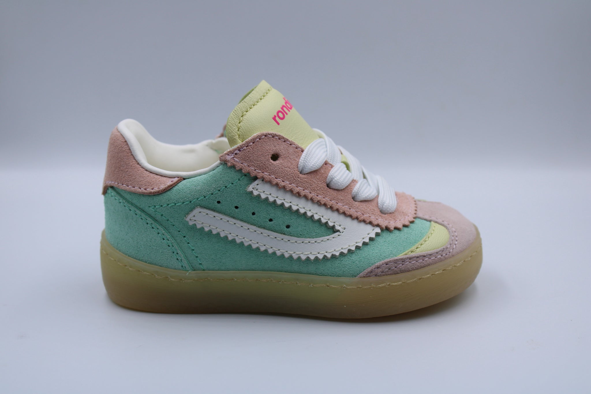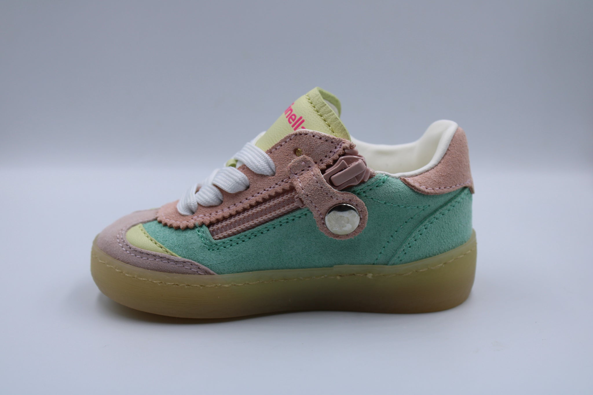 Schattige eerste sneakertjes in nubuck in verschillende pastelkleurtjes. Ze zijn voorzien van een stevig hieltje, soepele rubberen zool en verhoogd lederen voetbed. Voorzien van een rits om makkelijk aan en uit te doen.